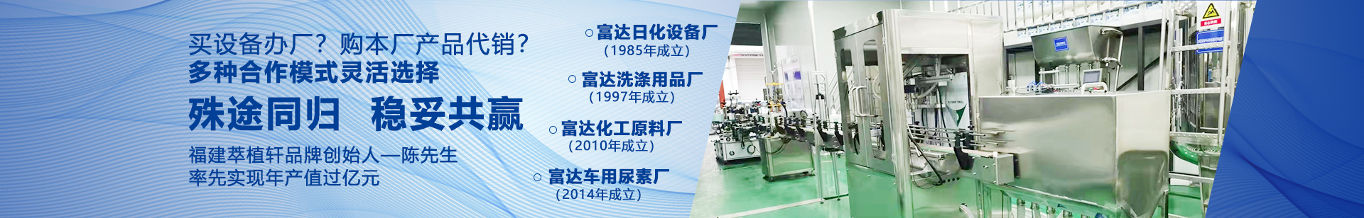 你好,曾先生,看到你的問題我知道你是一個比較穩(wěn)重的人,實際上日化設備市場上魚龍混雜,做設備太多,導致很多創(chuàng)業(yè)者不知道選擇那個設備公司好,導致盲目的選擇設備,最后失敗而告終。從事日化設備30多年的富達日化可以為您帶來以下建議